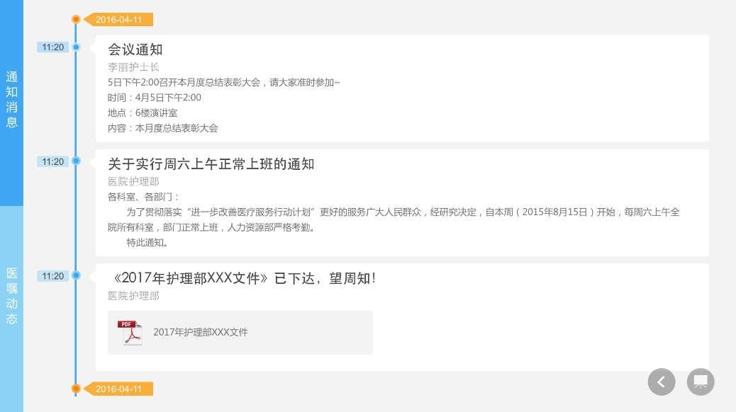 護(hù)理部統(tǒng)一發(fā)送正式通知消息或者科室內(nèi)消息互通