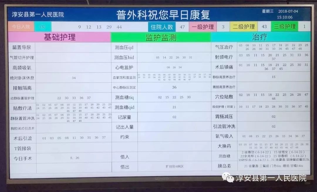 病房護(hù)理白板由原來(lái)的黑板手寫(xiě)改為現(xiàn)在的信息化電子屏幕顯示,更直觀更便捷。