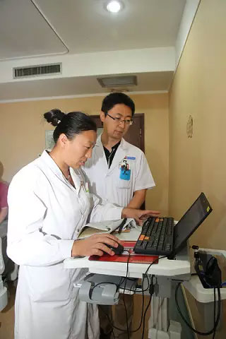 7月11日上午10點,即墨市人民醫(yī)院腫瘤一科,科主任夏環(huán)玲帶著幾個醫(yī)生和實習(xí)生正在大查房。夏環(huán)玲仔細(xì)檢查完病人,講解一下病情,決定讓病人做CT檢查。主治醫(yī)師崔林林熟練地操作著移動查房車,幾分鐘就完成了電腦操作。幾秒鐘之后,護(hù)士站和CT室的電腦終端上都出現(xiàn)了這條醫(yī)囑。家屬拿著預(yù)約單來到CT室,立即完成了預(yù)約。比起以前,效率提高了好幾倍。